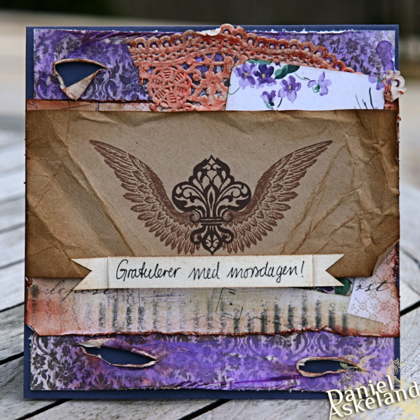 Selve motivet, fuglen, er hentet fra ett av Tim Holtz' mange stempelsett fra Stampers Anonymous.
